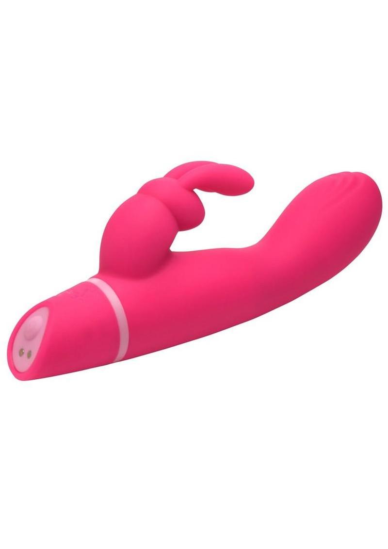 The gyrating G-spot tip is curved to seek and maintain contact with the anterior vaginal wall throughout use. Three rows of rotating metal beads run along the 4.2″ insertable shaft and massage the vaginal walls continuously during operation, layering a rolling internal sensation over the tip gyration that vibration alone cannot replicate. The firm dual bunny ears position directly against the clitoris and the clitoral bullet delivers pinpoint vibration to the external nerve cluster simultaneously. Full dual stimulation: both channels on, both working, independently controlled.