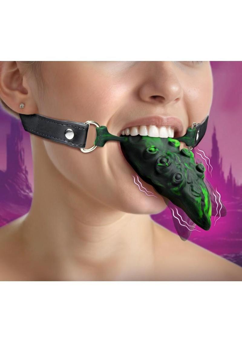 Creature Cocks Dragon`s Lick Vibrating Rechargeable Silicone Oral Enhancer with Harness – Green/Black