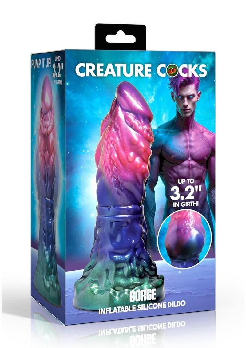 The Creature Cocks Gorge is an inflation dildo with a texture density and character design that puts it in a different league from standard inflatables. Deflated, it enters at 1.4″ narrowest diameter and 2.6″ widest. Inflate it with the included detachable hand pump and the shaft expands to 3.2″ at full inflation, 7.8″ insertable. The difference between deflated and fully pumped is substantial — buyers who are into size play and girth feel it immediately.