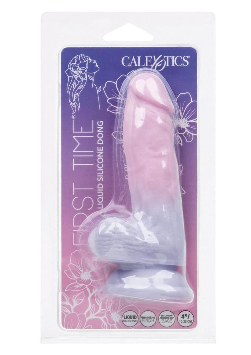 First Time Liquid Silicone Dong with Suction Cup 5.75in – Multicolor