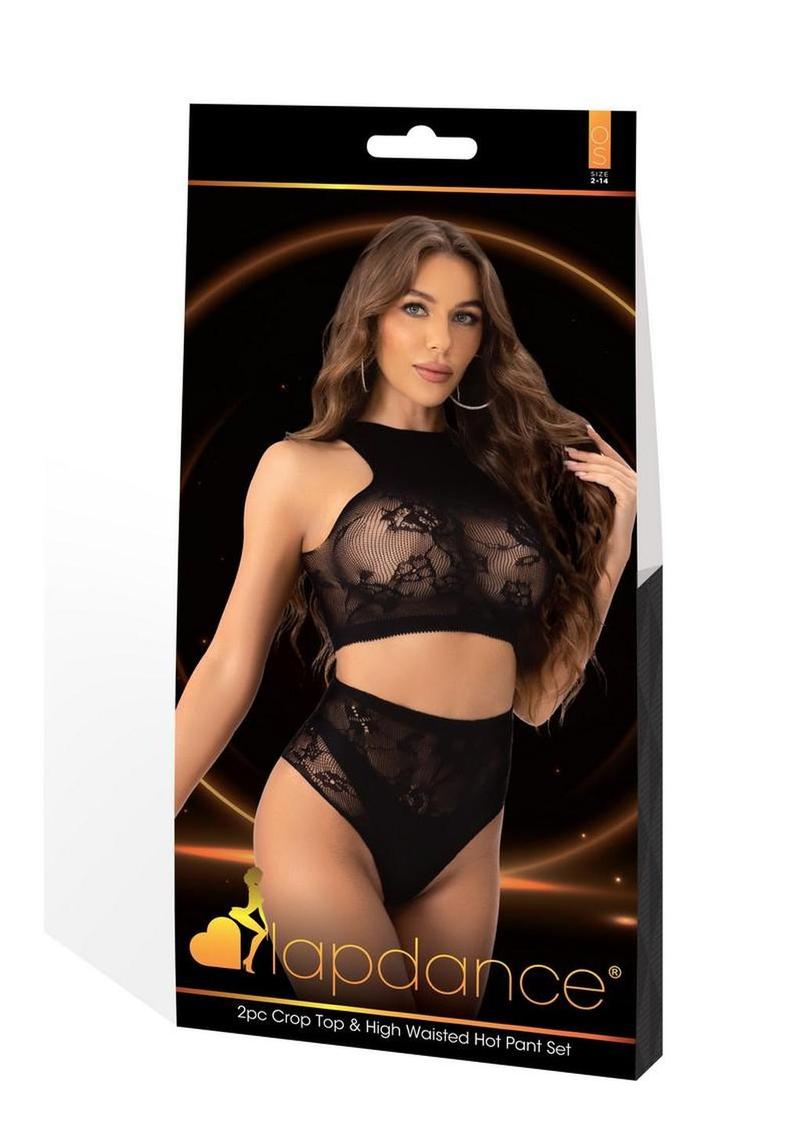 Lapdance Lingerie Crop Top and High Waist Hot Pants (2 Piece) – OS – Black