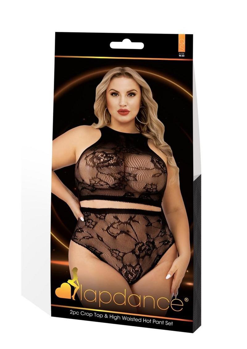The Lapdance Lingerie two-piece set combines sensuality and sophistication with a black crop top and high-waisted hot pant pairing.