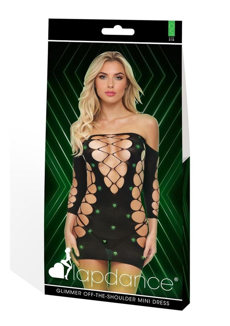 Prepare to steal the spotlight in the sensational Glimmer Off the Shoulder Minidress Glow in the Dark, a daring and ultra-flattering piece that merges high style with seductive flair.