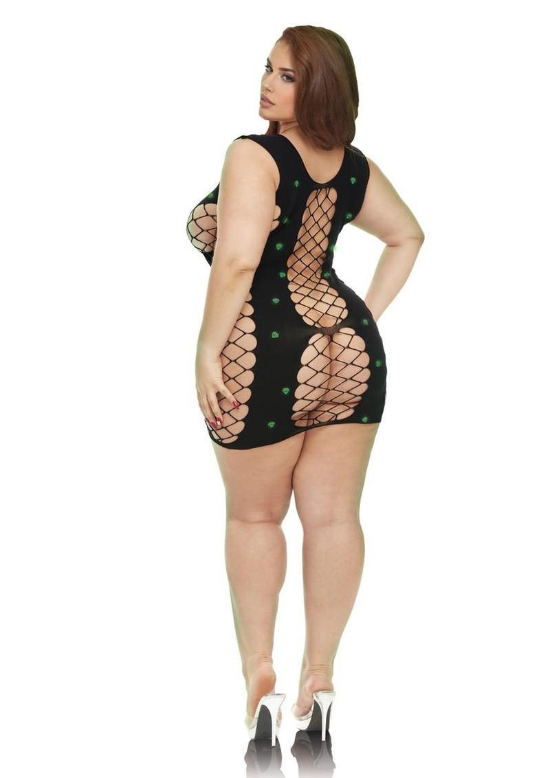 Lapdance Lingerie Glowing Gems Fence Net Mini Dress – Queen Size – Glow in the Dark