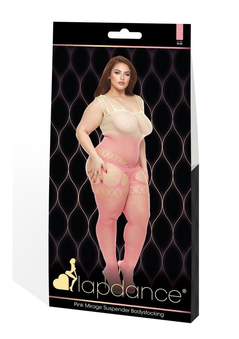 Step into the fantasy with the Pink Mirage Suspender Bodystocking from Lapdance Lingerie — a captivating blend of playful allure and seductive design.