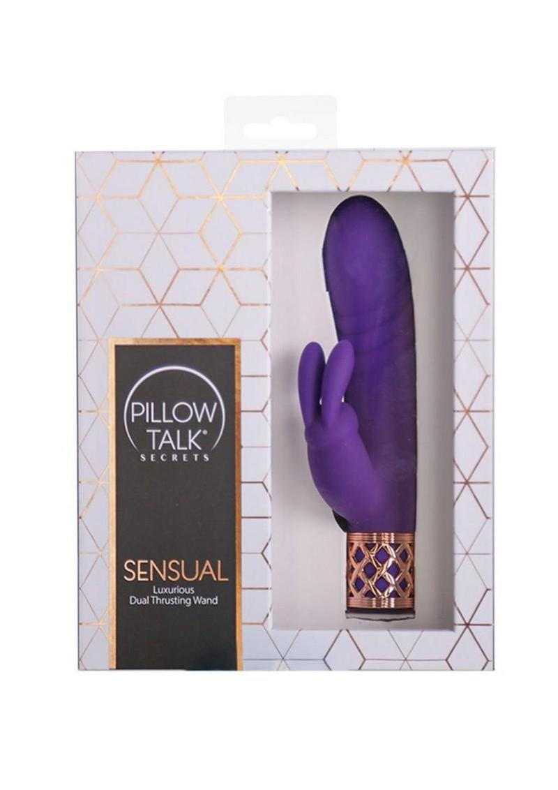 Pillow Talk Secrets Sensual Rechargeable Silicone Dual Thrusting Rabbit Wand – Purple/ Rose Gold