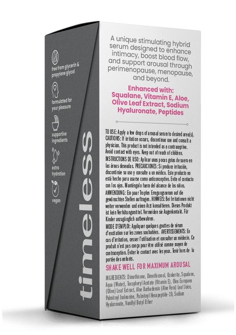 Directions: Begin with applying a small amount of simply® Timeless arousal serum to the desired area as needed. Reapply as necessary to heighten arousal during intimate moments.