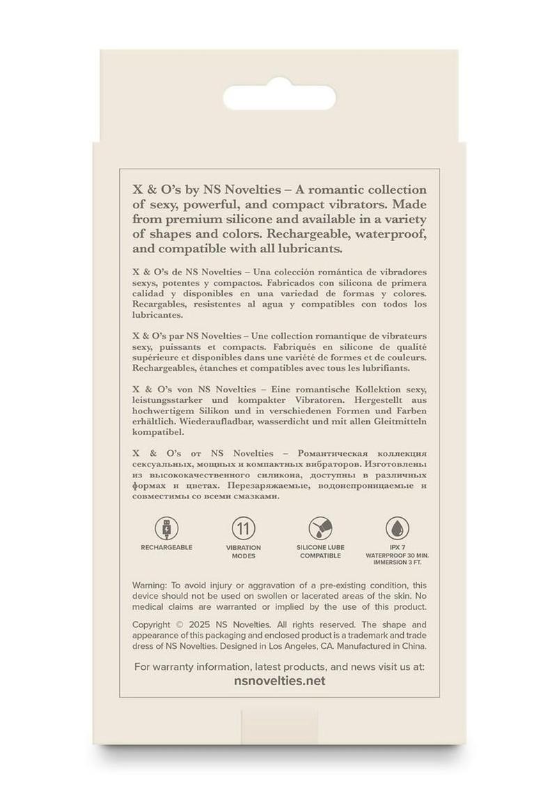X & O’s by NS Novelties – A romantic collection of sexy, powerful, and compact vibrators. Made from premium silicone and available in a variety of shapes and colors. Rechargeable, waterproof, and compatible with all lubricants including silicone lubricant. Pin charger, IPX 7, 3 speeds, 8 functions, 11 modes.