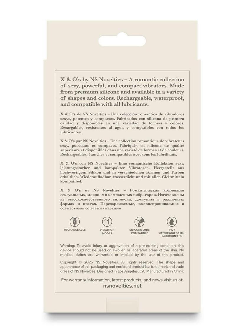 X & O’s by NS Novelties – A romantic collection of sexy, powerful, and compact vibrators. Made from premium silicone and available in a variety of shapes and colors. Rechargeable, waterproof, and compatible with all lubricants including silicone lubricant. Pin charger, IPX 7, 3 speeds, 8 functions, 11 modes.